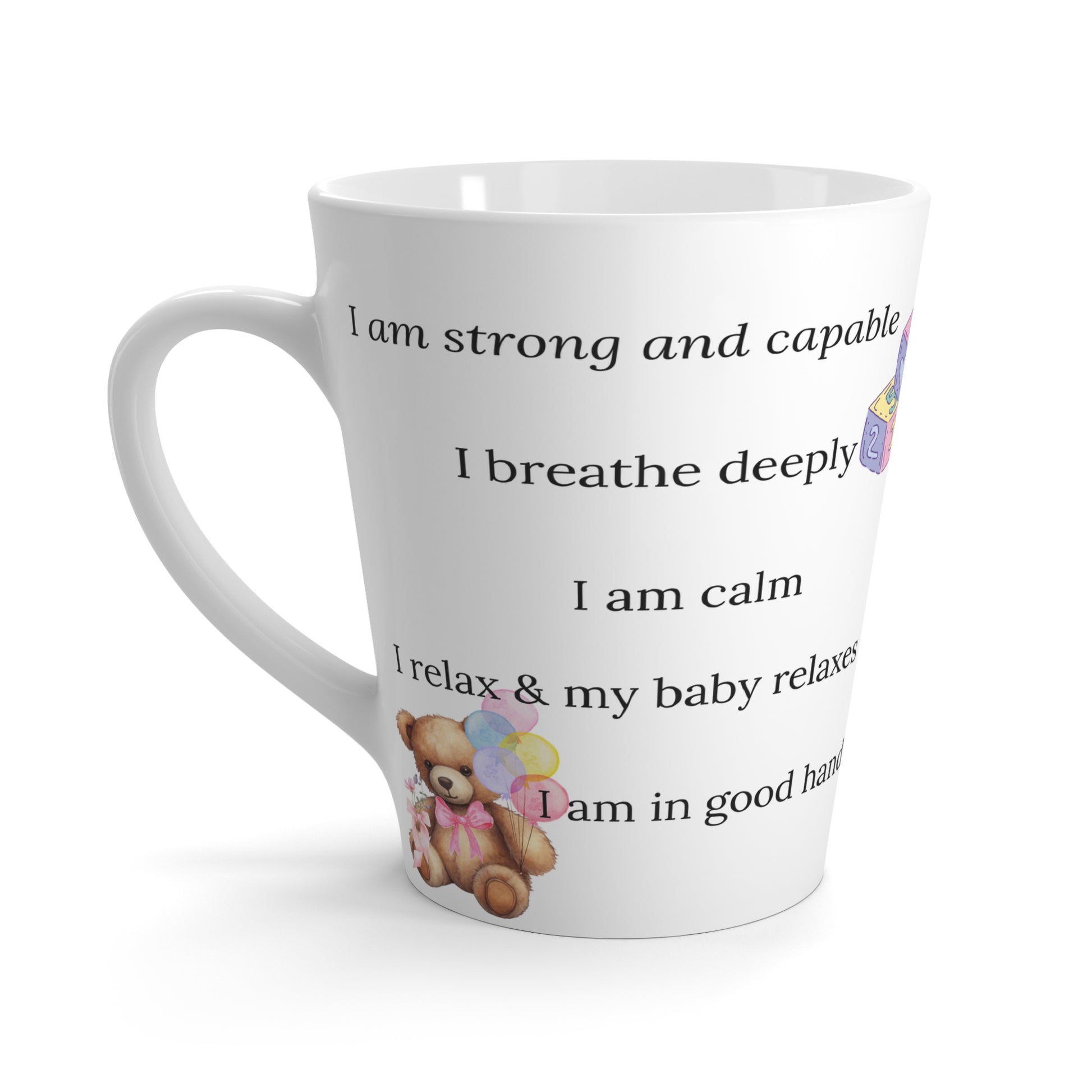 The I Am Strong Latte Mug is a steadfast companion for those navigating the sacred journey of birth and care. With its tall, elegant shape and comforting size, this mug is perfect for savoring a morning latte, calming tea, or soothing cocoa during moments of reflection and renewal.